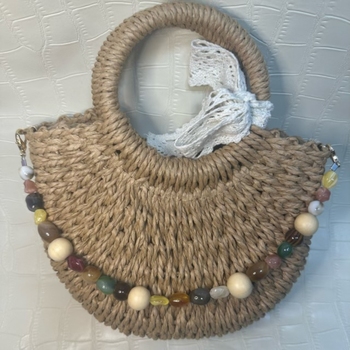 Moda feminina saco envolvido com madeira mão-puxar resina âmbar contas